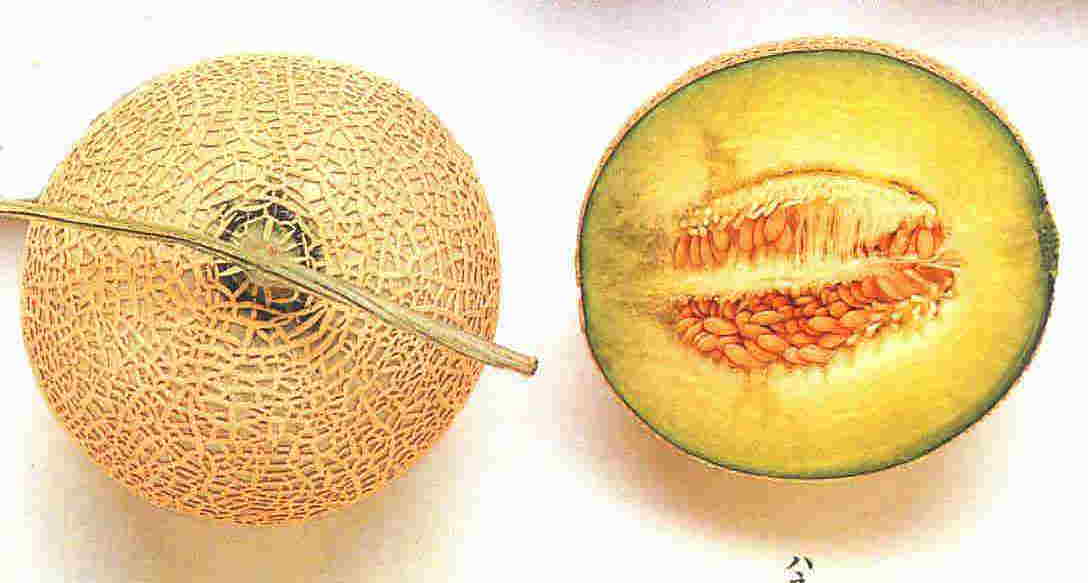 大きさは少し小ぶりで果皮に細かい網が入り、果肉は緑色でややかたく、味と香りはマスクメロンに似ています。