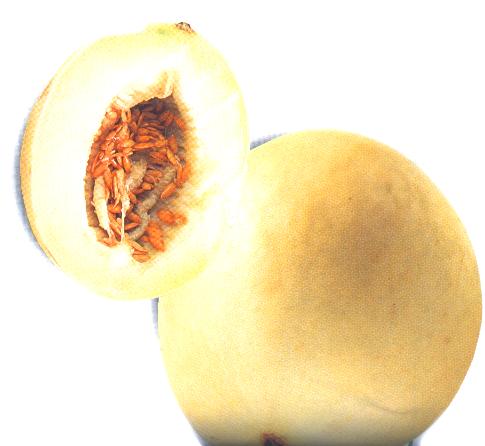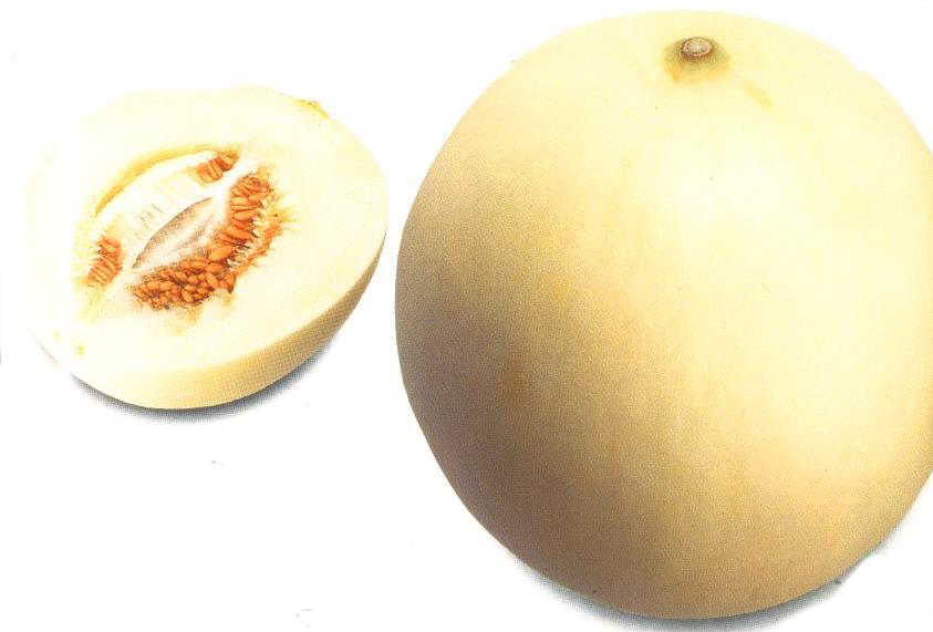 果形は楕円形で果皮は、白、又は黄色のメロンでネットは出ません。